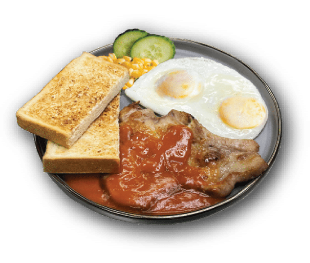 蕃茄汁公司什扒 (豬扒/雞扒/巨無霸香腸/太陽蛋) 25.50